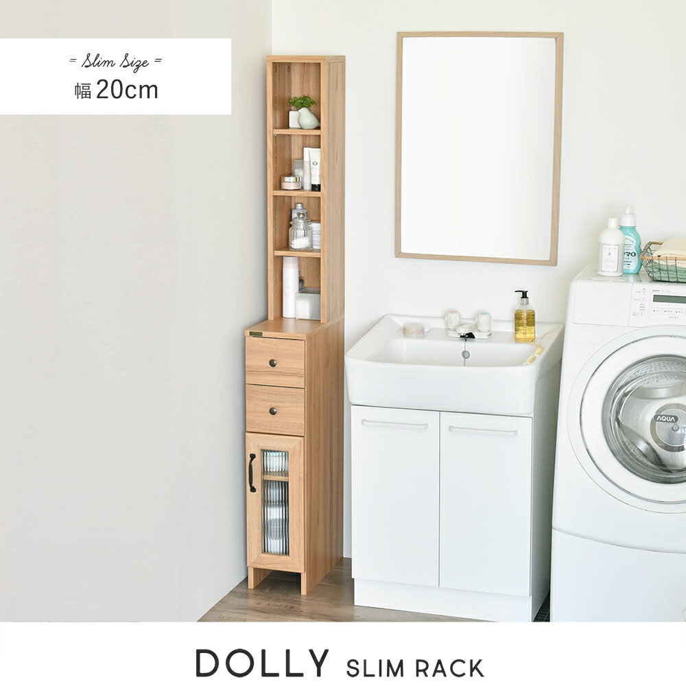 送料無料 隙間収納ラック 幅20cm すき間 すきま 洗面所 ランドリー キッチン収納 木製 DOLLY ドリー 収納 洗濯機サイド スリム 省スペース 棚 収納ラック 収納棚 オープン 引き出し収納 扉付き 北欧 おしゃれ かわいい ホワイト ナチュラル