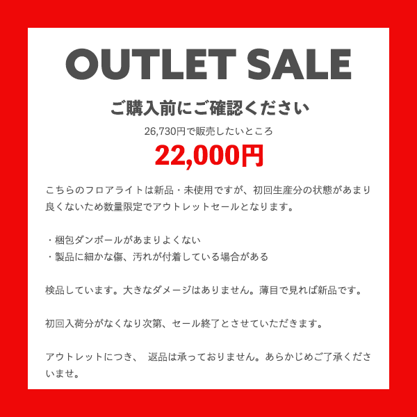 サイズ(mm) 本体:幅300×奥行き400×高さ1617 天板:幅300×奥行き300×床から天板までの高さ605 コード長:1800 重量(kg) 6.5 カラー ブラック、ホワイト 材質 スチール、真鍮、天然木 仕様 口金:E26 最大ワット数:60ワット×1 点灯方法:フットスイッチ 天板耐荷重:2kg セット内容 照明器具本体×1 リモコンLED電球×1 専用リモコン×1 リモコンホルダー×1 リモコンLED電球の詳細はこちら 電球スペック(1球あたり) 口金:E26 消費電力:9ワット(待機時:0.3ワット) 全光束:740ルーメン(電球色)・810ルーメン(昼白色) 色温度:2700〜6500ケルビン 外寸:幅70×奥行き70×高さ136mm 重量:118グラム 保証期間 1年間 注意事項 商品のデザイン・仕様は改善のため、入荷のタイミングにより予告なく変更する場合がございます。